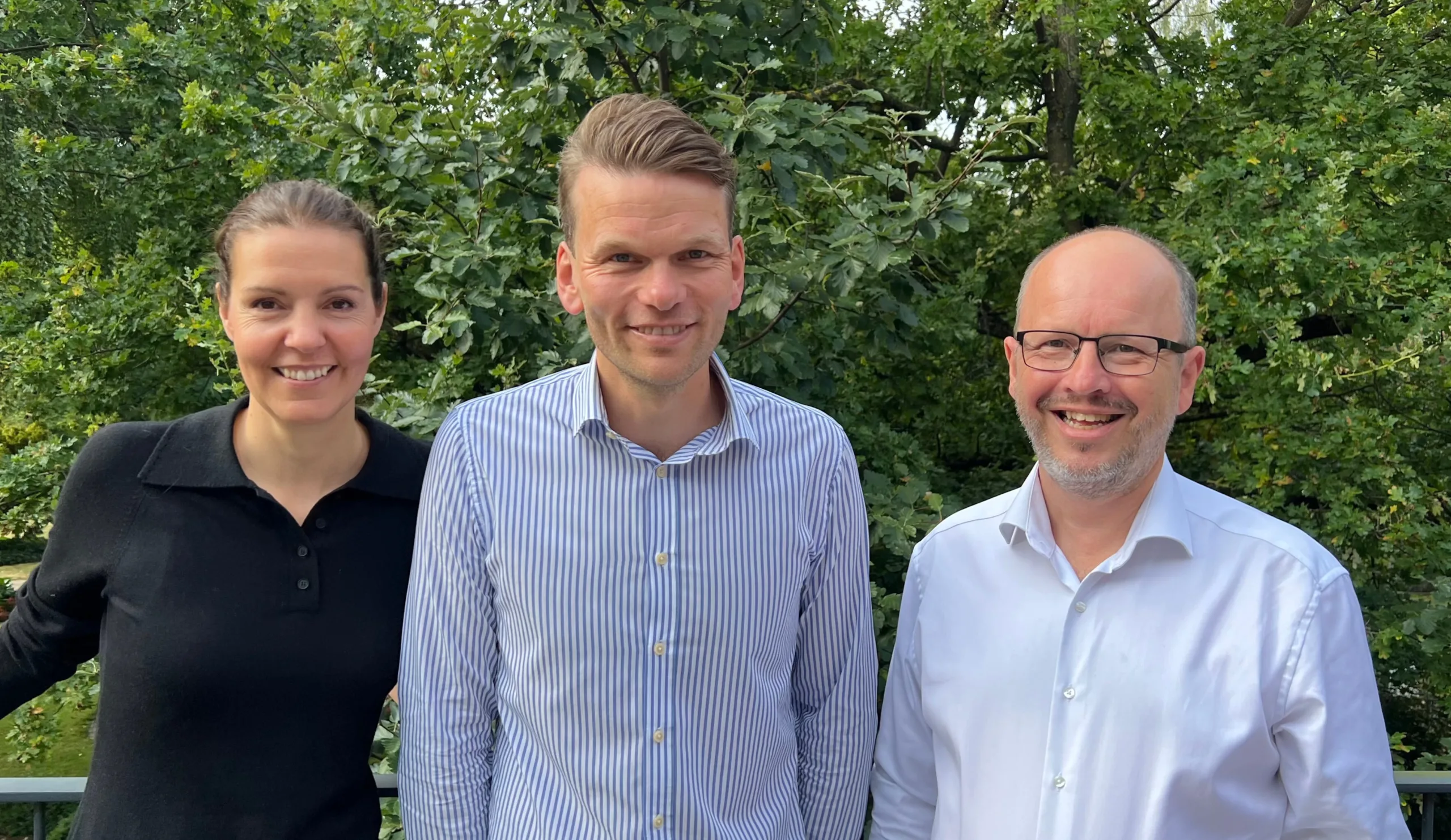 Fra venstre: administrerende direktør Katrine Jensen; direktør for Areal & Rettigheder, Esben Billeskov; samt direktør for AI & Viamap, Casper Thybo.